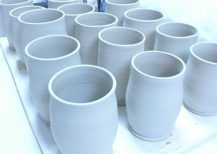 These cups might all look the same but because they were thrown by hand, each one differs slightly from the others. -