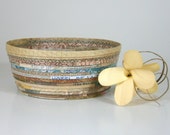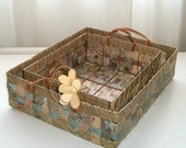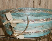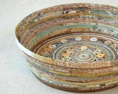 Here at Blue Tang Designs, you’ll find a special collection of handmade baskets, bowls, and accessories, created from paper and other materials that might otherwise be discarded. The paper comes from a variety of sources – leftover wallpaper, gift wrap, brown paper bags, catalogs, newspapers, scrapbooking paper, outdated calendars, and, well, you get the idea. Most of the paper I use comes from friends, neighbors, and my own never-ending supply. And our community-wide garage sale this past October was like hitting the jackpot – maps, Christmas cards, coloring books… I get so inspired by the colors, patterns and textures, and all the possibilities!