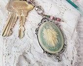 5 out of 5 starsI love it! It is a beautiful cameo of a cream-colored Fairy on a teal background. It perfectly matches the purse I currently carry. It looks like an antique, yet it is shiny as new. It arrived quickly and very well-packaged! Great seller!