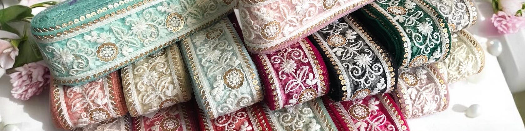 1. Behold the beauty of embroidered fabric trims, delicate adornments that deserve tender care.