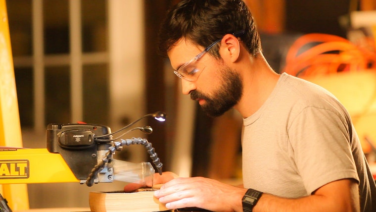 Cutting a book on the scroll saw -