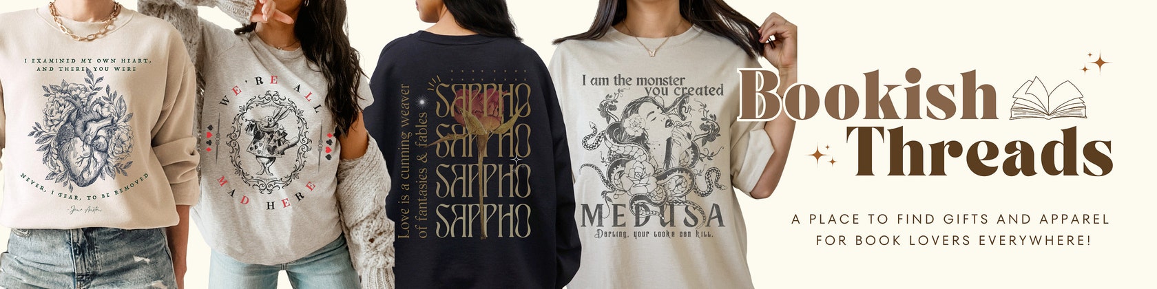 Today, Bookish Threads is more than an apparel store. It's a tribute to the timeless power of stories and the communities that cherish them. We create each piece to inspire, connect, and celebrate the story in all of us.