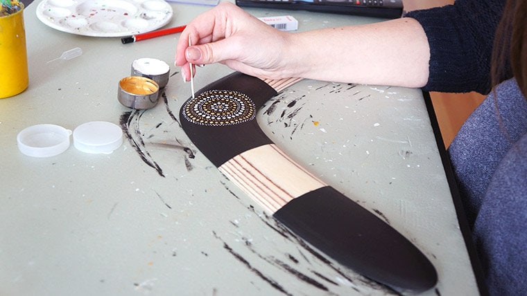 As interest in my work grew globally, so did the need for unique designs. This is where my wife, Goda, stepped in. While I handle the aerodynamics, she and other local artists provide the soul of the boomerang through hand-painted art.