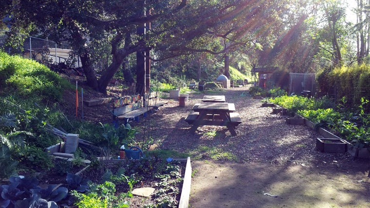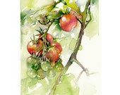 The photograph above is of my community garden in Eagle Rock, a neighborhood in northeast Los Angeles, in the foothills of the San Gabriel Mountains—or, for the gardeners among you, hardiness zone 10b. The watercolors in the shop were (mostly) painted there. These small close-ups close the distance in time between me and the eleven-year-old and her brown shoe. In their execution, I fall through the looking-glass again, into a green architecture made up of nooks and crannies and shaded, moist spots and fertile pockets where all kinds of living things abide. In the upright networks of tomato vines or closer to the ground, beneath the broad tenting leaves of the squash, I see plants making smaller and smaller copies of themselves as they try to fill space and gather light. The figures of insects, the patterns of leaf, stem, and fruit, echo each other.