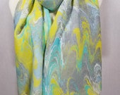Boulet Design Studios specializes in using the ancient art of ebru to create one-of-a-kind paintings onto 100% silk scarves that are super soft 8mm Habotai silk and longer than most at 72" long x 14" wide. Catch us at a local event in Denver where you will be able to design and print your own artistic masterpiece, or shop from our selection of artisanal scarves available here!