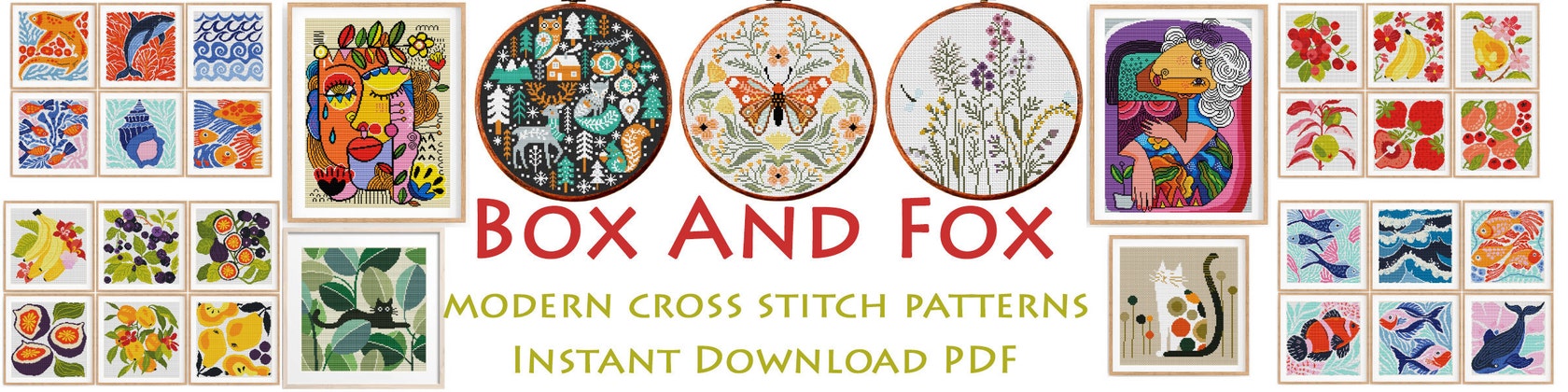 Welcome to our "Box And Fox" cross stitch digital pattern shop!