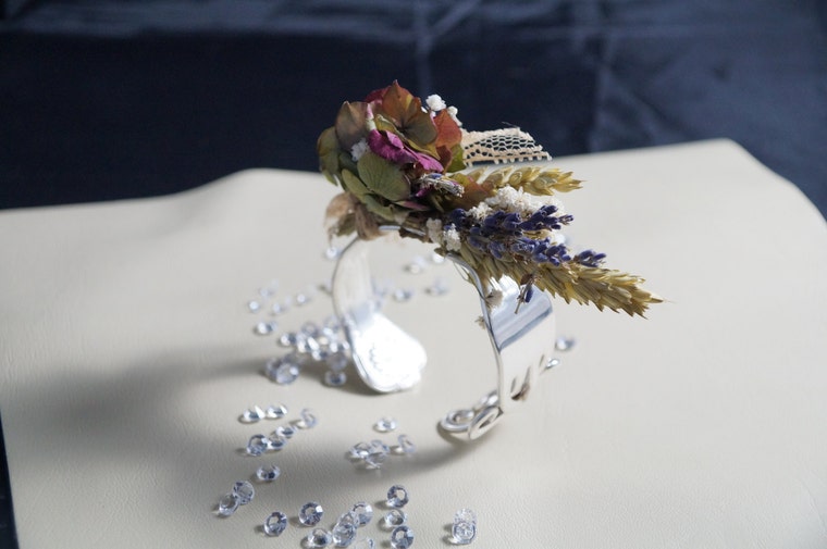 As pulseiras geralmente são feitas de um garfo de sobremesa (pequeno) ou um garfo de mesa (médio/grande) . Eles são maleáveis, então abra e perto de acomodar tamanhos de pulso.