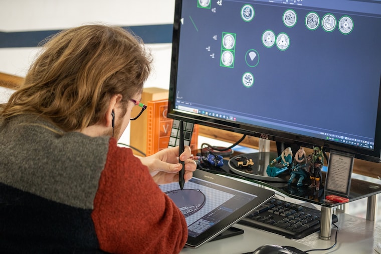 Behind the scenes! Ed crafting new designs in our Brighton studio, where gaming passion meets masterful craftsmanship. -