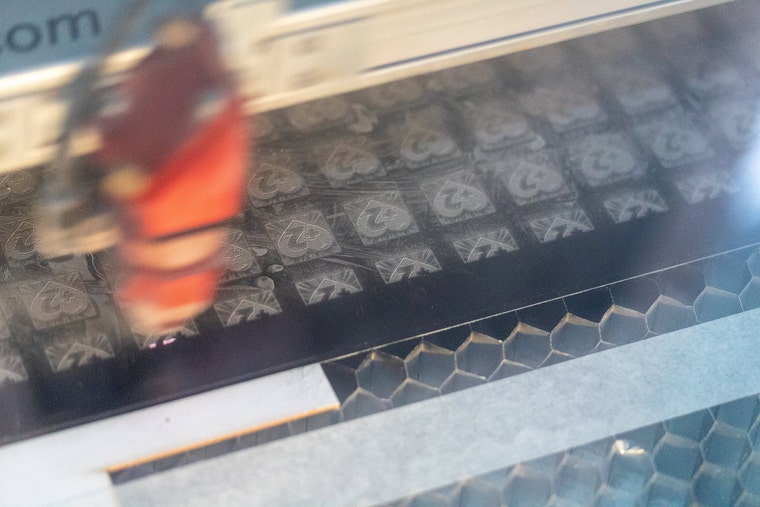 Our laser cutter in action! Lasers etching designs for our ever-expanding product ranges. -
