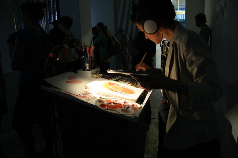 Me as courtroom artist for a life performance in Berlin nGbK. (photo by Alex Giegold) -