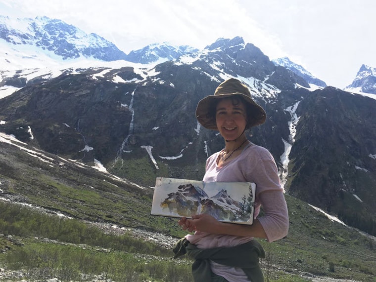 A plein air watercolor in the Alps, Austria. What a wonderful montains landscape! -