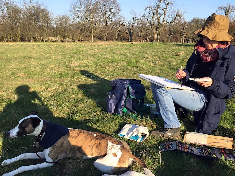 In the country side of Frankfurt, the early Spring, painting a plein air landscape.