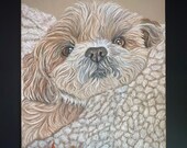 5 de 5 estrellasThe portrait is PERFECT! Look at my handsome puppy and his beautiful likeness. I cannot possibly recommend CocoaCutieCreations enough. (To be clear, Cookie's ears are back in the attached picture, but normally look like the portrait.)