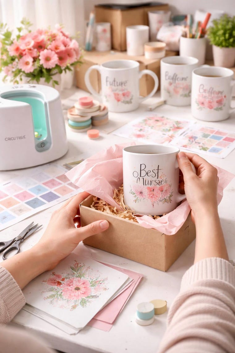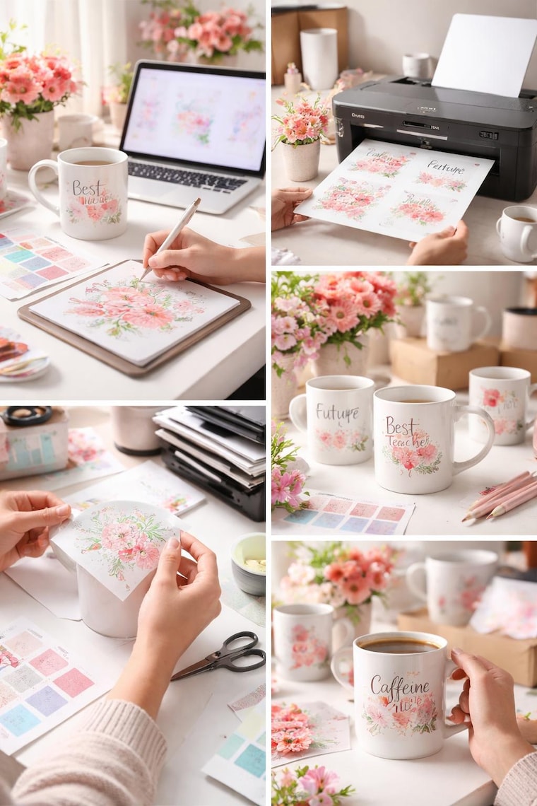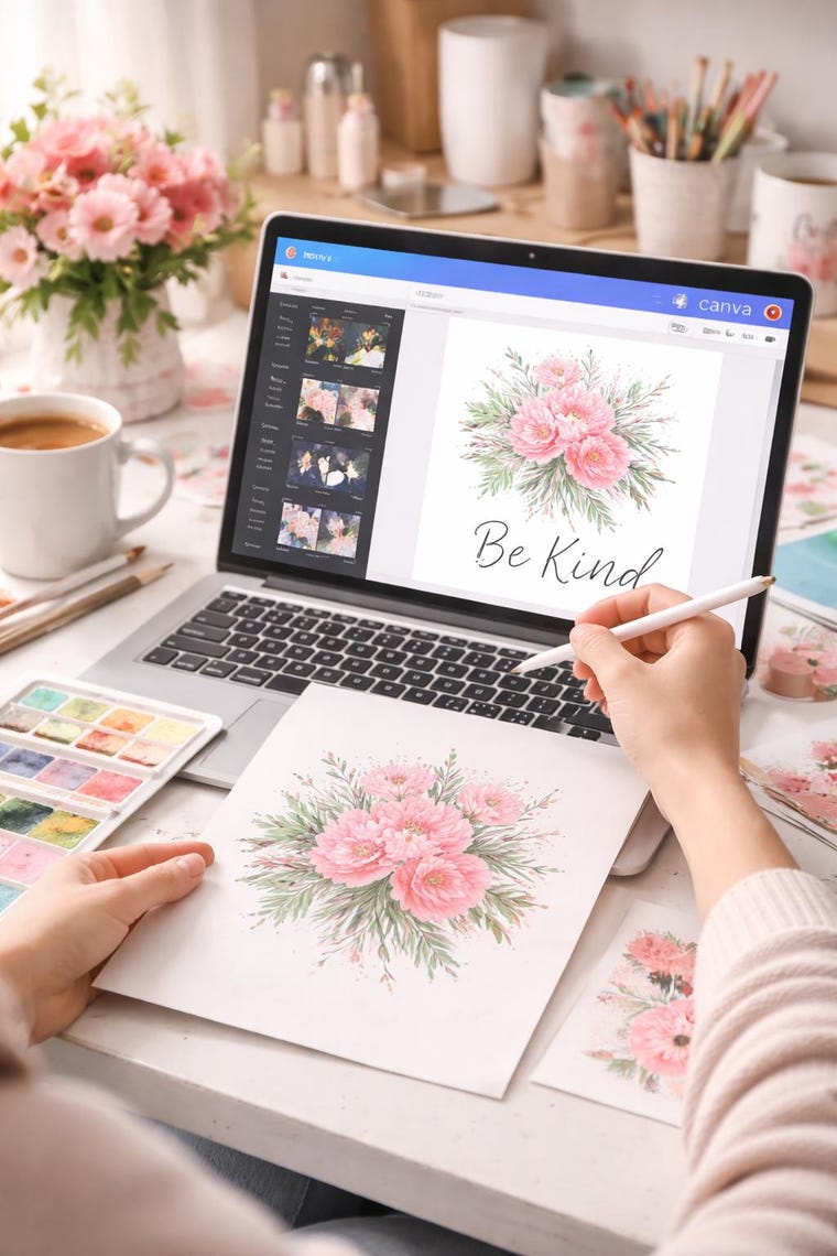 Where every idea begins, coffee in hand, soft colors, and a workspace designed to spark creativity and intention. -