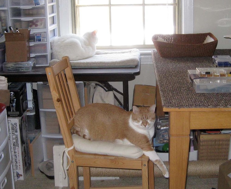 Each piece of jewelry is handmade by me, in a smoke-free home, with help from my two furry assistants, Design Consultant Cloud and Chief Inspector Mango.