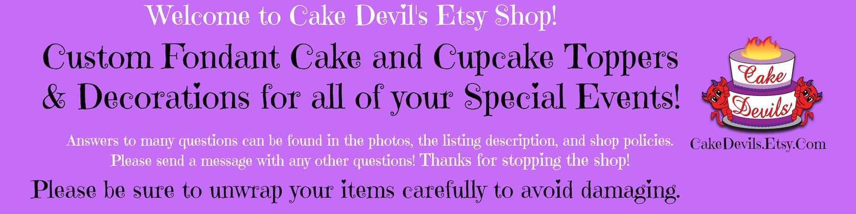 Cake Devils is my passion. I am so fortunate to be able to do something I love so much. When you order from Cake Devils, your cake topper is being created with love, by my two hands... quite often late into the night, while my son is asleep. I wouldn't have it any other way.