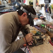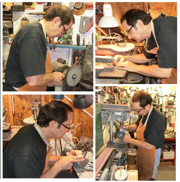 Jack Cameron began knife making by cutting and grinding blades from metal. He fashioned blades from things such as metal files, leaf springs, railroad spikes, etc. While not a trained blacksmith he has also heated and hand hammer forged primitive style blades. However, most of the knives he produces today are from high quality components which he finishes, shapes and polishes.
