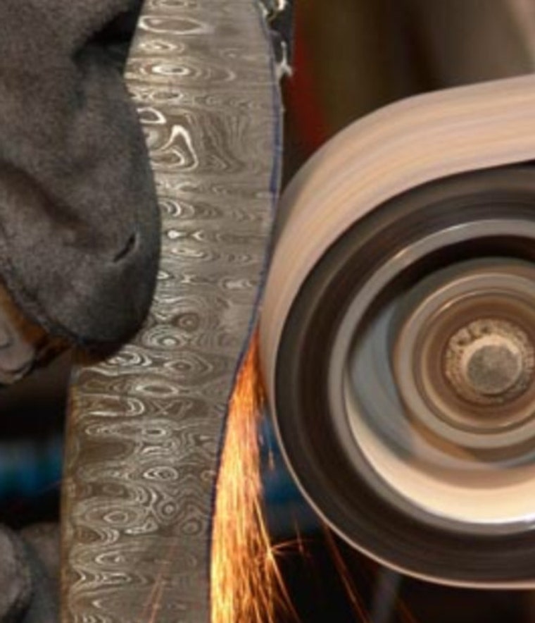 The Damascus and stainless steel components he uses are commercially produced by master blacksmiths and metal workers. The knives are then carefully constructed from these components, each receiving their final shape and design through the grinding and file work processes Cameron applies.