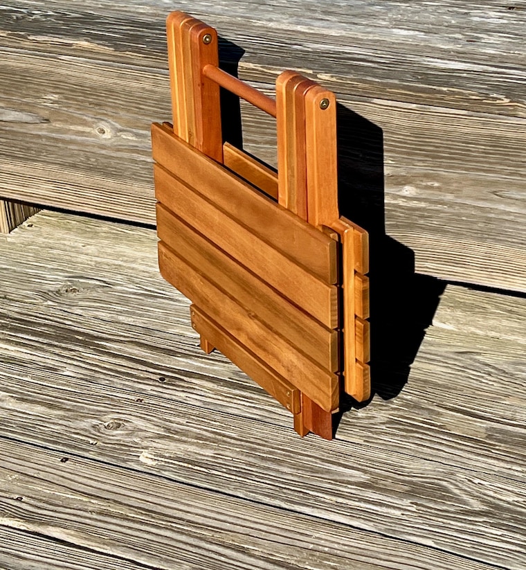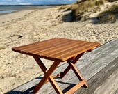 Today we build handcrafted folding tables originally designed for the beach, but perfect for RVs, camping, boating, and home...anywhere adventure takes you. We use baleau wood with a danish oil finish so there is no paint to fade or chip. Stainless steel fasteners are used throughout so rust is not a worry. Simply, our tables are designed to be weatherproof, splashed in salt water, and stand up to wind, rain, and sun.