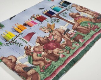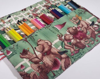 Pencil Roll, Teddy Bear Picnic, Pencil Roll, Pen Roll Up, Art Organizer