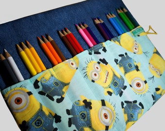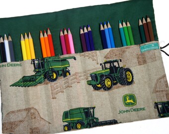 Kindergarten Graduation Gift, Tractor Gift, 24 Colored Pencil Roll up Case, Pencil Roll, Pencil Case
