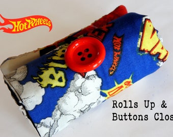 Vintage Hot Wheels Fabric Crayon Roll, Birthday Boy Gift, Art Organizer