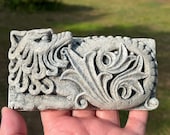 More recently here at Cast Shadows Studio, I have been making pieces in a “cast stone,” a material that is used largely for decorative architectural components and is intended for use OUTDOORS. These pieces retain both the look and feel of carved stone.