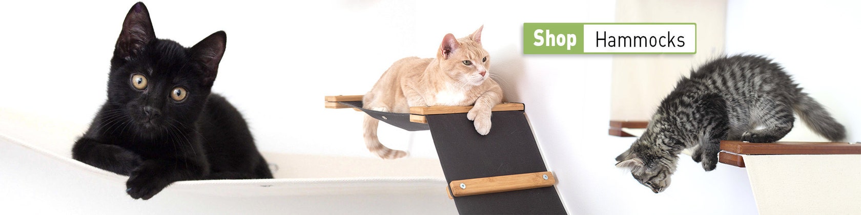 These are the first clear cat hammocks on the market and have been a really fun addition to cat walls. They're made with clear vinyl and function as a see-through hammock for your cat to play, nap, and observe from. The innovative clear cat hammock is bringing the fun back to catnaps. It's incredibly easy to clean without removing from the wall and the thick material has been weight tested for 65lbs per hammock.