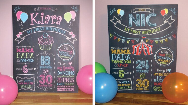 Custom milestone posters. Girls cupcake design an boys circus -