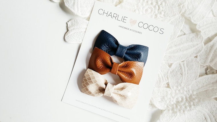 charlie coco's "sweet" leather bows are perfect for even the littlest ponytails. -