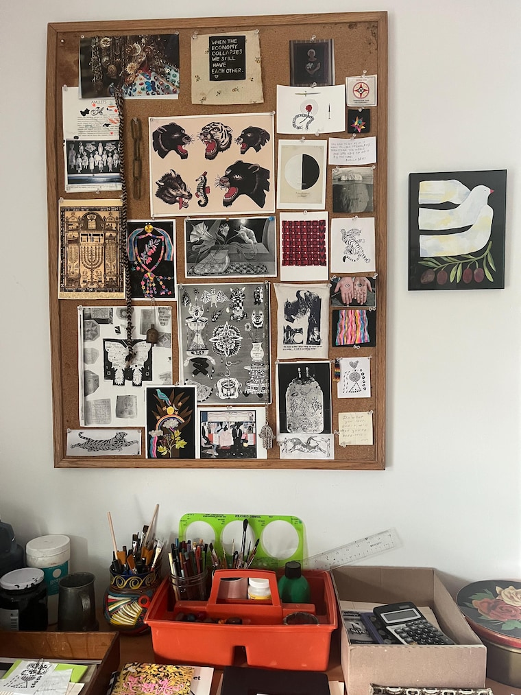 Chelsea Granger is a multidisciplinary artist. Painting, drawing, illustration, and murals are the foundation of her practice. She recently self-published a zine about death and grief titled So Many Ways to Draw a Ghost. After the death of her mom as well as a dear friend, she started seeing her art as a way to ‘sing up’ life, with the hope that her art can act as a doorway to create conversations about death and grief. Chelsea’s art is of the everyday, inspired by the overlap of earth/spirit dimensions, and woods as church. She is interested in painting as medicine, painting as a portal, painting as a spell. Her work has been exhibited across the northeast and her murals exist across New England. For over twelve years Chelsea has collaborated with dear friend Brittany Nickerson of Thyme Herbal, making medicine posters and zines, and is the Illustrator of Dirt Gems botanical deck made with dear friend Anne Louise Burdett. Chelsea attended Parsons School of Design before receiving her Bachelors in Painting from UMass Amherst and a Certificate in Therapeutic Recreation from Gateway Community College. Her work celebrates life while honoring death, and walking gently into the unknown.