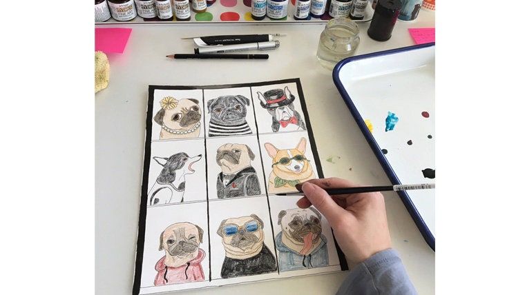 Rainbow Unicorn Pugs, Frida Kahlo Pug, and The Pug Who Has Had a Very Long Day. -
