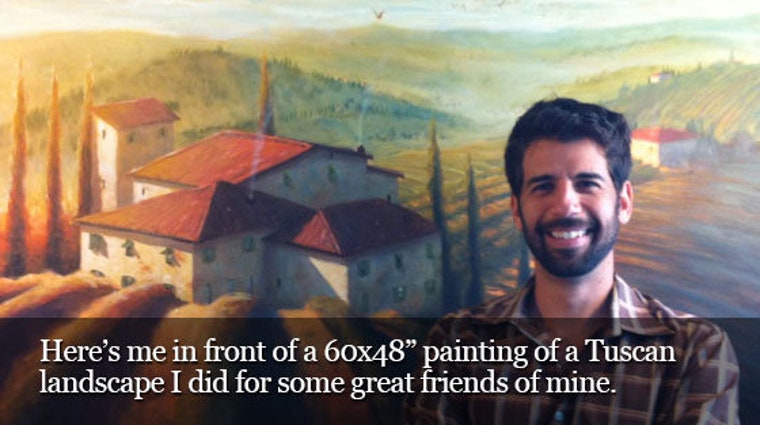 Here's me in front of a 60x48" painting of a Tuscan landscape I did for some great friends of mine. -