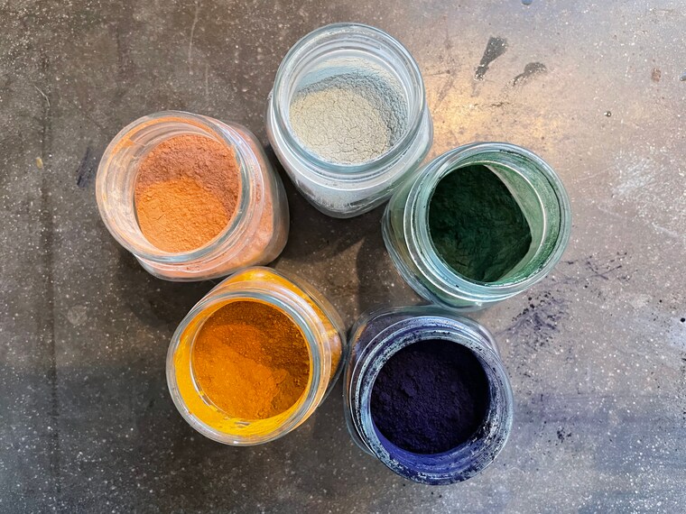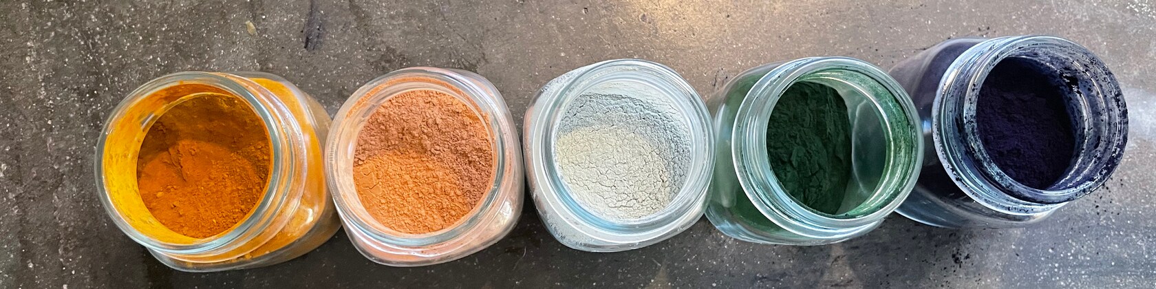 Dyes made from plants and clays. Madder root, french clays, spirulina, indigo