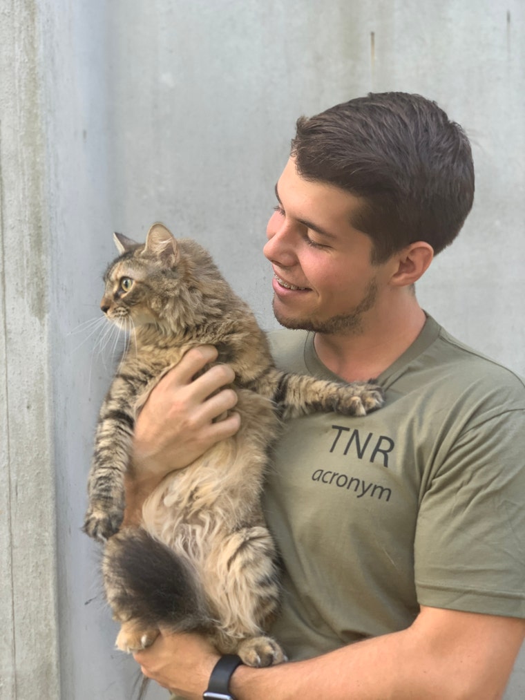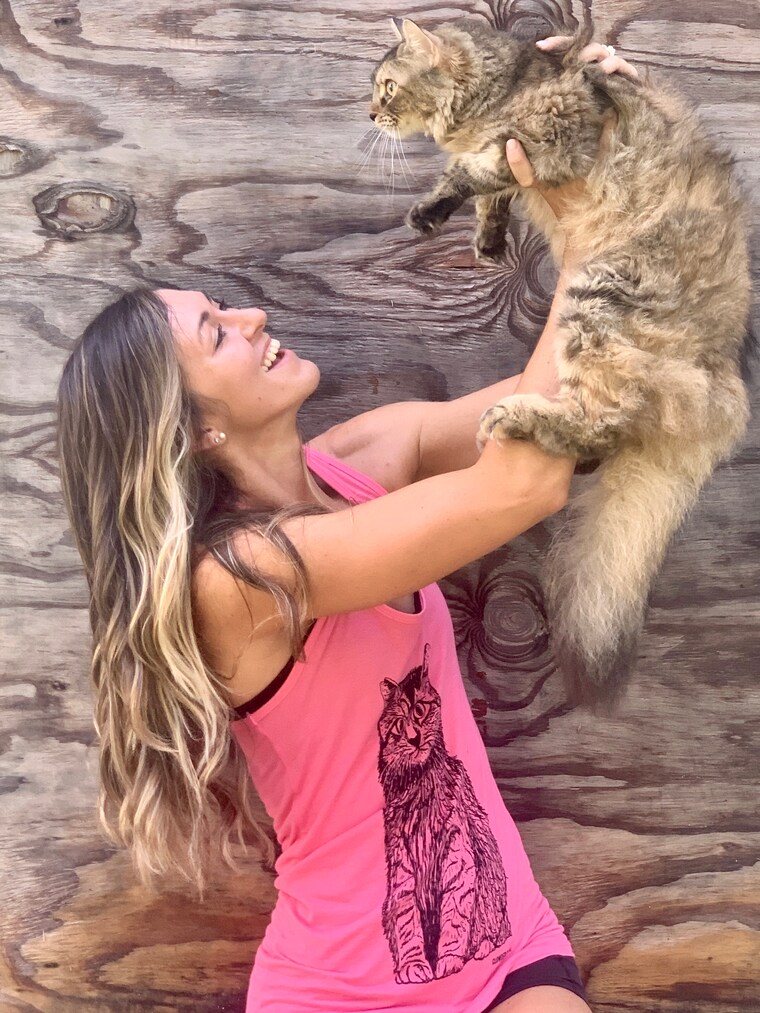 Colby, the founder and Lily, a rescue cat and main model for one of the designs! -