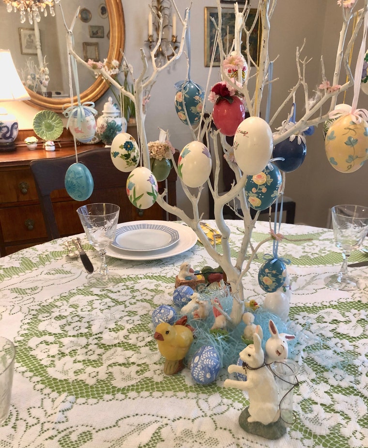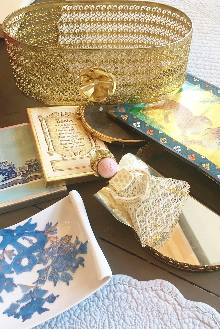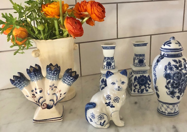 Try displaying your vintage collectibles like cloissone, Asian blue and white and small porcelain trinket boxes together -