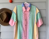 5 out of 5 starsArrived in a timely manner. The fabric is even better in person! Love the fact that it is sustainable. There were no signs of general wear and tear for a fabric that’s been repurposed. The stitching is of high quality. The structure of the shirt is beautiful.