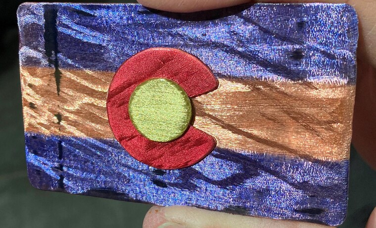 Colorado flag, made of copper with a brass 'sun' -