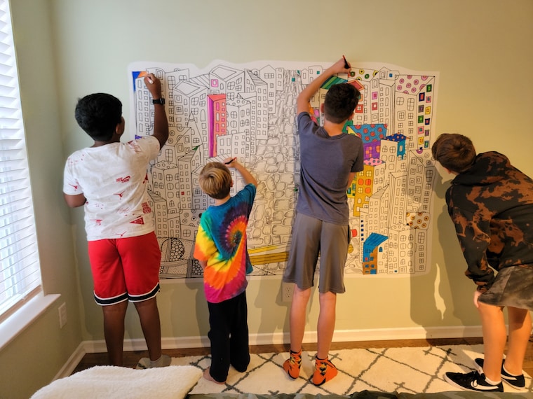 At some point, I realized my entire living room, kitchen, home office, his bedroom and even his bathroom were wallpapered with beautiful coloring art. He used push pins, scotch tape, stickers and anything that he would find around the house to affix his coloring papers to the walls. You guessed it, my walls were ruined, full of holes everywhere, paint ripped off from using tape, and the coloring papers teared and thrown out. Logan kept adding to his collection every day, regardless.