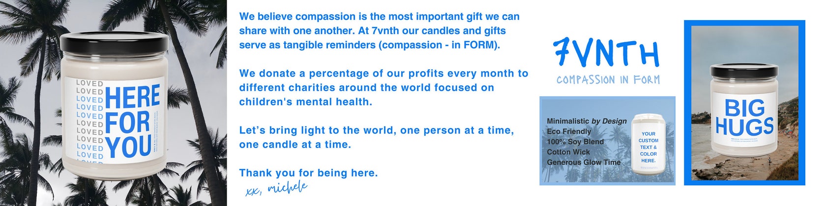 A simple act of compassion can change the course of someone’s entire life. Every action matters, and every candle shared or lit with intention can create profound comfort. Our candles serve as tangible reminders - compassion in form and the light we can share. Candles bring light into our darkest hours. They share strength when we feel unable to bear the weight ourselves. Candles help us feel the presence of our loved ones after they have passed. Lighting a candle for someone says, "I love you and I see you.” Light has the power to ground and unite us, making others (and ourselves) feel loved and supported.