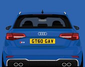 5 out of 5 starsWonderful poster! I got it for my boyfriend as he has a miata and wanted to decorate his college room. I asked the owner to put his initials on the plate and if possible to make it yellow like english plates to resemble James Bond. I was so pleased with the final result. I didn’t receive it within the expected date as there was a problem with the royal mail. I contacted the seller and he quickly responded and immediately resolved the issue by sending me another poster. I would highly recommend!