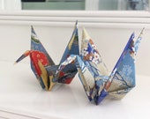 The crane choices that are offered here are made from those papers that I found over time to be of the highest quality and of the patterns and colors that over and over have been good matches for the people in my life. Whether purely decorative or as your good match for one of your people, this selection of cranes should make your choice an easy pleasure.
