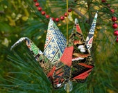 I began making origami cranes in 2005 after I saw a photo of one as an ornament made from an especially lovely paper. I’d never seen one that beautiful before. These cranes seemed like they would be perfect holiday gifts for my friends. For family, I attached them onto wrapped packages instead of bows as a special something extra and so they became bonus gift keepsakes.