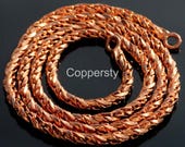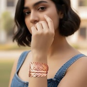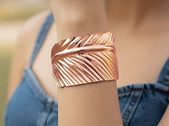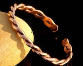 5 out of 5 starsShinny copper, no patina at all. I should’ve sized down - it sits 1/3 of the way up my arm with a size 6.