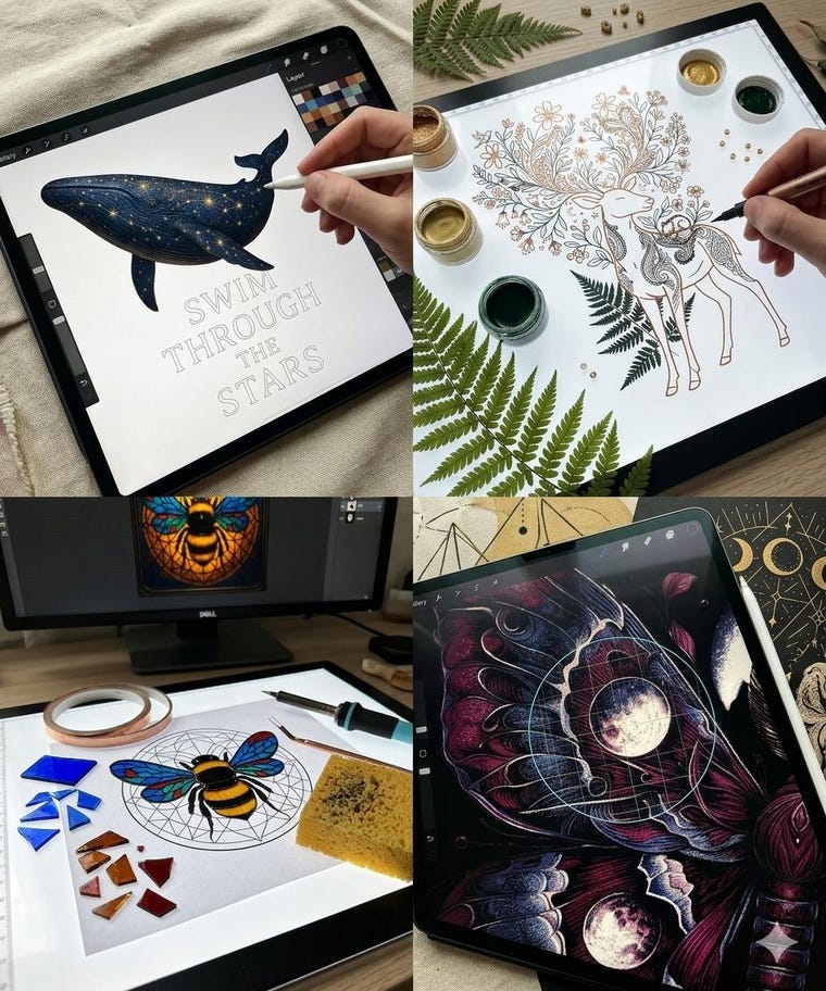 "Unlocking the cosmos: Bringing mystical symbols and starry details to life in our studio." -