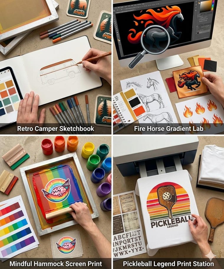 "From initial sketches to final digital strokes: A glimpse into our diverse design journey." -