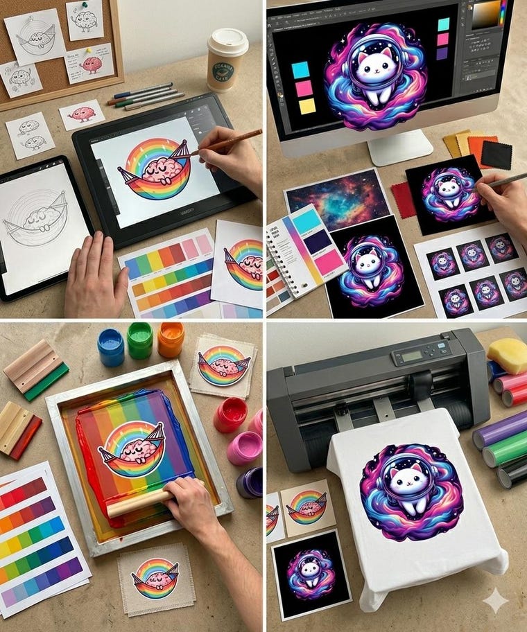 "From quirky characters to wearable art. Watch our stickers transform into vibrant t-shirt prints!" -