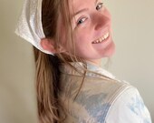 5 out of 5 starsThis little kerchief is exactly what I was looking for! My hair is thin & fine so finding something to stay on my head is a struggle. This little cotton kerchief stays put! It’s also well made and the white eyelet goes with anything.