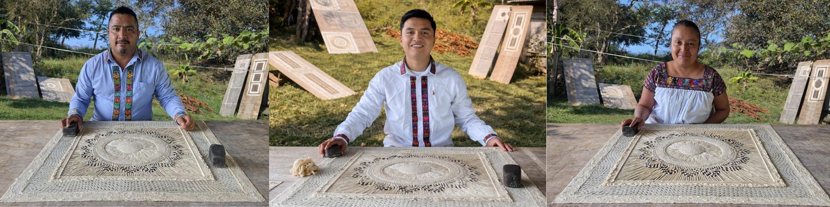 Desde la Sierra Norte de Puebla, México, hasta tu hogar, cada una de nuestras piezas nace entre montañas, bosques y el cantar de los pájaros. En nuestro taller artesanal, el eco del machacado de la corteza de jonote se convierte en arte. Ese sonido ancestral acompaña a nuestra gente, que con paciencia, esfuerzo y dedicación transforma la naturaleza en obras únicas de papel amate.