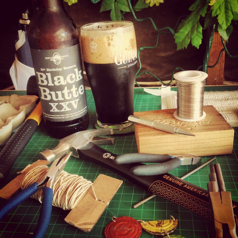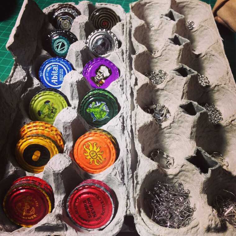 As an artist that usually prefers to work in the three-dimension, I have hoarding tendencies. This lead me to saving interesting bottle caps of the one or two beers I really enjoyed. Eventually that turned into a bit of a habit; stopping at small bars that sold bottles and asking for caps and soliciting friends. Though the process of creating these items is not super extensive, the hunt for the perfect cap or set of caps is.